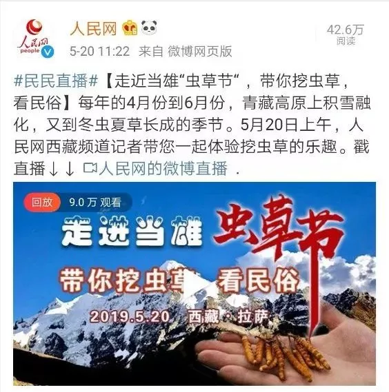 此次虫草文化旅游节开幕式,在人民网微博、阳光西藏微信公众号、西藏商报微信公众号、中国西藏旅游微博、逐梦当雄微信公众号、以及当雄县广播电视台微信公众号上直播,总关注量突破49万余人次。