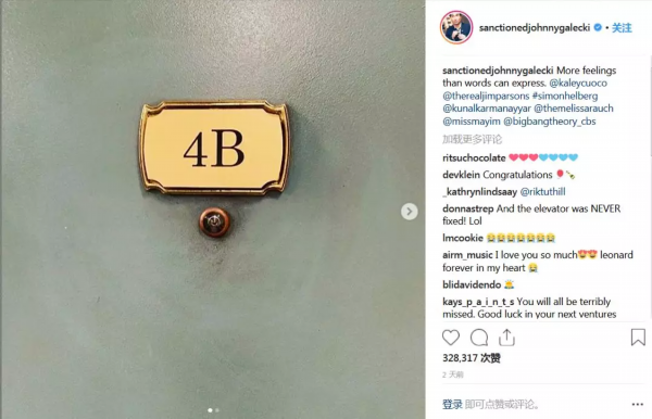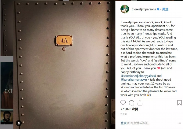 5月1日,长寿美剧《生活大爆炸》(The Big Bang Theory)宣布正式杀青,并于5月16日播出最后一集,时长达1小时。最后一集拍摄结束后,主演们纷纷在网上发文感谢观众并纪念这个难忘的时刻: