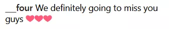 “谢谢,谢谢你们的鼓励,谢谢你们夜以继日地调音,感谢你们分享与生活大爆炸的故事。谢谢你们,即使有不太愉快的时光。谢谢你们,在我们困难的时候支持我们。对所有(生活大爆炸)的粉丝来说······这是最后一次了。怀揣爱和感激的昆瑙”