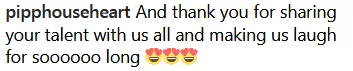“咚咚咚······谢谢你,4A公寓,这是一个让人梦想成真的地方,见证了这么多的友谊。 谢谢你们,所有人!当我们准备好录制今晚的最后一集,最后一次进出这个公寓大门时,我的心情难以言表。 但是,我脑海中浮现出‘爱’和‘感恩’这两个词······对所有人的爱和感激。 感谢你们所有人!”