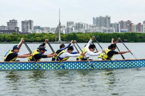 龙舟是这样一种运动,它能够让人摒弃年龄、职业、性别,抛开个人英雄主义,齐心协力,只为一个共同的目标而奋勇前行。参与龙舟活动,不仅能激发团队凝聚力、塑造企业文化,而且能够更好地体会“豪情干劲、同心协力、敢为人先、奋发向上、激流勇进、挑战自我”的龙舟精神,因此,吸引了众多企事业单位的热情参与,蠡湖上有100余支队伍在进行龙舟训练。景色宜人的蠡湖水面、同舟共济的龙舟精神、端午佳节的民俗文化共同构成 “水韵无锡,动感蠡湖”的体育旅游品牌形象。
