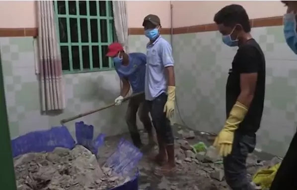 5月15日晚间,越南平阳省一名男子打扫新买的房屋,准备搬入。由于屋里有2个灌满水泥的大型橡胶桶,他请人打破搬离,没想到在一个桶里发现藏着腐烂的尸体,吓得急忙报警。