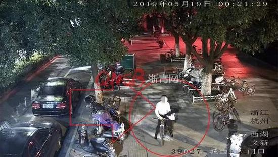 5月19日凌晨0点20分左右,杭州文新派出所巡逻队员小方在巡逻后前往古墩路绿城医院门口集队点名,就把警用自行车停放在绿城医院门口的自行车停放点。