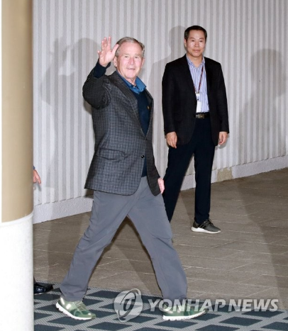 22日下午,小布什搭乘大韩航空特别航班抵达首尔金浦机场。他将于23日上午在青瓦台与韩国总统文在寅会面。