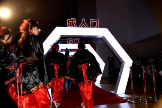 成人礼是在少男少女达到成人年龄时举行的象征迈向成人阶段的仪式。中国古代的成人礼指冠礼和笄礼,男子满20岁时行冠礼,即加冠,表示其已成人,被族群承认,之后可以娶妻。女子则是在满15岁后行笄礼,及笄之后可以嫁人。今天,在泰兴市体育馆举办的泰州市十八岁成人仪式示范活动中,主办方就采用这样的传统仪式。