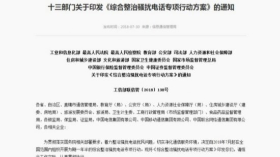 据介绍,目前,国家工业和信息化部、公安部、司法部等十三部门已经印发《综合整治骚扰电话专项行动方案》,决定自2018年7月起至2019年12月底,在全国开展综合整治骚扰电话专项行动。《方案》中明确表示,包括对于“95”“96”“400”等码号资源,各基础电信企业要按照“谁接入谁负责”的原则,严格语音线路和用户资质审查,规范资源使用。
