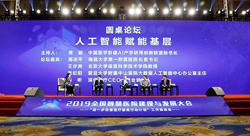 人民网北京5月11日电 11日,由国家卫生健康委员会医政医管局支持,人民网和江西省卫生健康委员会主办,人民网·人民健康、南昌大学第一附属医院承办的2019全国智慧医院建设与发展大会暨“进一步改善医疗服务行动计划”工作推进会在江西南昌召开。南昌大学第一附属医院纪委书记陈志平、北京大学信息科学技术学院王亦洲教授、复旦大学附属中山医院大数据人工智能中心办公室主任张纪阳、中国医学影像AI产学研用创新联盟执行秘书长萧毅教授,深睿医疗CEO、联合创始人乔昕等围绕“人工智能赋能基层”的主题进行了探讨。