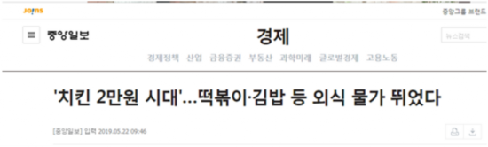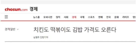 《朝鲜日报》:炸鸡、炒年糕和紫菜包饭价格都上涨了