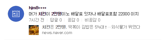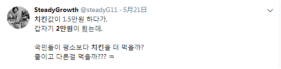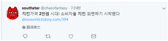 炸鸡一下从1.5万韩元飙升到2万韩元。这是让国民平时少吃炸鸡?减少(吃炸鸡)都吃其他东西?