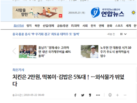 除了韩联社,炸鸡、紫菜包饭等价格上涨一事被多家韩媒报道↓