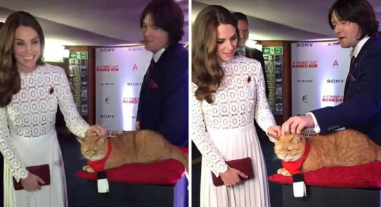 还有一次是在2016的11月,人们发现她的左手背面有一块更大的长方形创可贴。当时有很多猜测,或许某只猫应该对此负责。因为此前一天,凯特王妃出席电影“流浪猫鲍勃”的首映式,她作为一家慈善机构的主要赞助人亲临现场,还亲切地摸了摸鲍勃的脑袋。