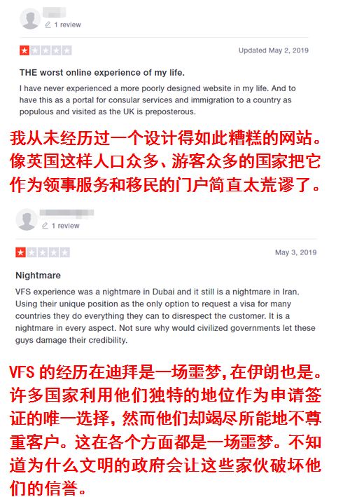 在全球性商业消费评论网Trustpilot上,来自包括美国、英国、印度的网友们是这样吐槽签证中心及其背后的外包商们的: