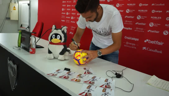 结束采访后的萨拉比亚认真签名