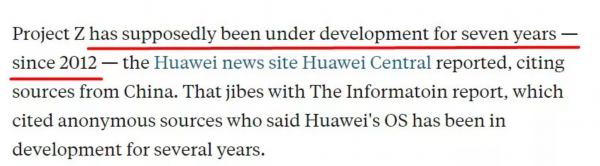 在这篇报道里就有提到,研发“鸿蒙”绝不是仓促地赶鸭子上架。