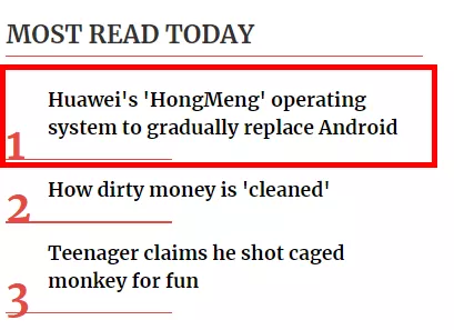 法新社对“鸿蒙”系统的报道,经马来西亚最大的英文媒体《新海峡时报》转载,成为后者今日网站阅读量最高的文章: