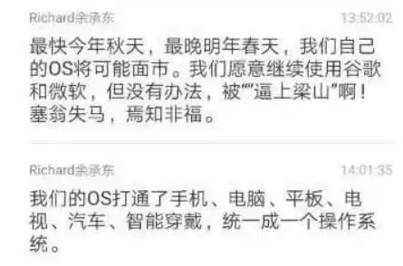 华为消费者业务总裁余承东这两天也透露过“风声”:华为自己的移动操作系统,最快今年秋天就将面市了。
