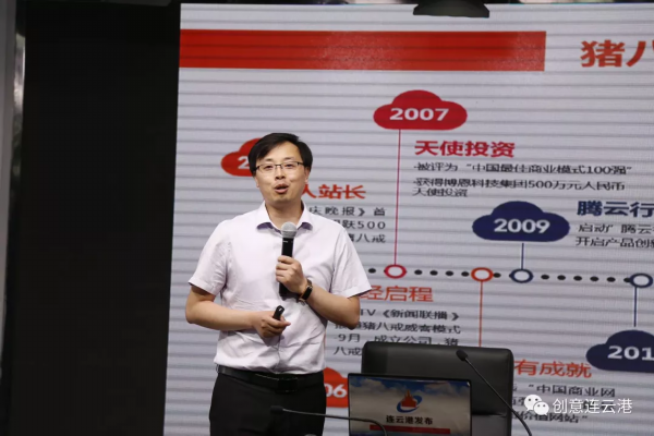 ▲猪八戒江苏总经理黄高尚为大家介绍了网站发展历程、涉猎领域和服务范围,希望能为中小微企业实现平台化生存与发展。