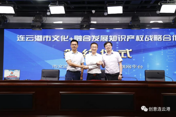 ▲活动中,连云港文化+融合发展服务平台分别与猪八戒网、“律兜”平台签署了战略协议,合力打通平台在版权、法律服务等方面的产业链。