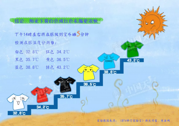 这么热的天气,不知道你穿的什么衣服。小编强烈推荐大家在高温天气里多穿白色和红色的衣服,因为比较散热。