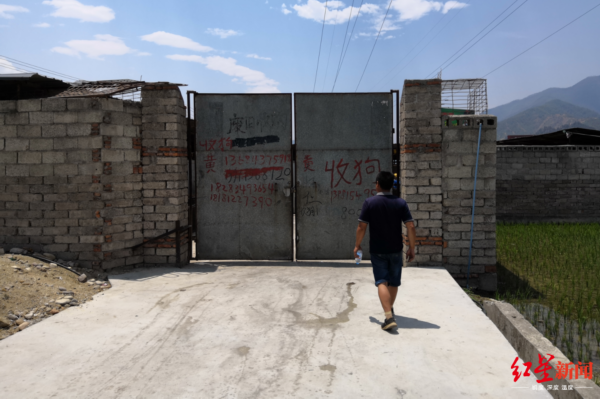 24日中午,在收狗点的院坝内,老板杨勇坐立不安,时而起身踱步,时而向外张望,他们也观察着这些爱狗人士的举动。