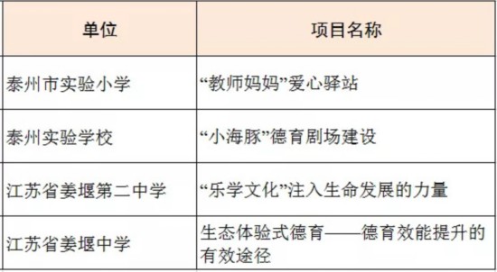 根据《关于做好2019年基础教育内涵建设项目申报工作的通知》(苏教办基函﹝2019﹞5号)精神,在各市推荐申报的基础上,经省教育厅委托相关单位组织评审,共遴选出2019年小学特色文化建设工程项目50个、薄弱初中质量提升工程项目60个、普通高中课程基地52个、基础教育前瞻性教学改革实验项目53个(其中一类项目49个、三类项目4个)、中小学生品格提升工程项目65个(具体名单见附件),现予以公示,公示时间为:2019年5月24日—30日。