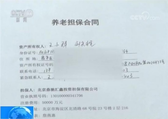 为了让老人们深信不疑,中安民生还安排老人与北京鼎驰汇鑫投资担保公司签订了一份担保合同。