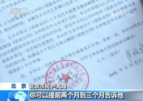 北京市民 卢凤鸣:你如果不想做了,半年就可以解押,或者你要卖房了,你要干什么了,你可以提前两个月到三个月告诉他,然后他就给你解押。