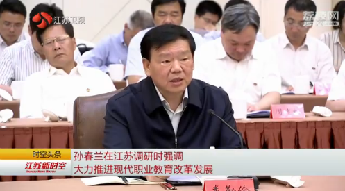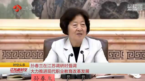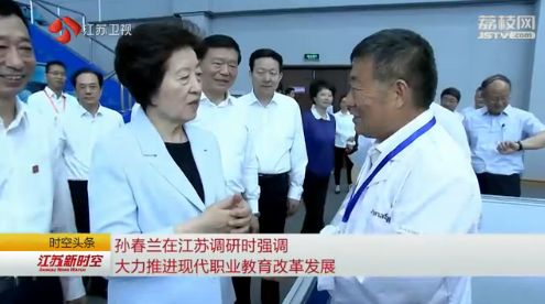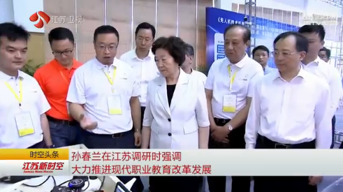 孙春兰来到苏州农业职业技术学院、南京工业职业技术学院、南京卫生高等职业技术学校、苏州富强科技有限公司等学校和企业,实地调研职业教育"三教"改革和1+X证书制度试点情况,了解产教融合实训基地建设和企业大学办学情况,观摩职业技能赛证融通邀请赛。在苏州大学、南京大学和南京工程学院,孙春兰详细了解科研创新、高科技成果转化和应用型人才培养等情况。她指出,当前职业教育正面临前所未有的发展机遇,习近平总书记主持深改委会议审议职教改革方案,明确了方向、目标和重大政策,关键是抓好落实。要深化职业院校教育教学改革,促进产教融合,推进1+X证书制度试点,不断提高技能人才的培养质量。