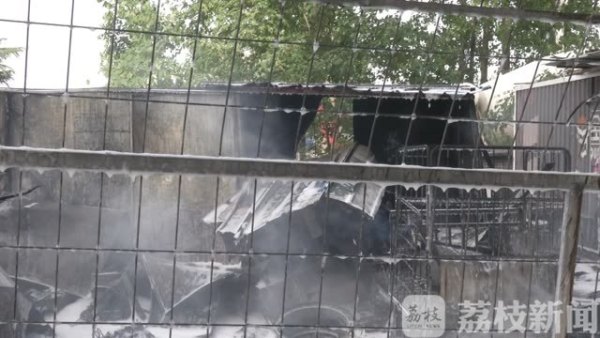 记者赶到时,明火被扑灭,但补胎店已经烧成了空壳。