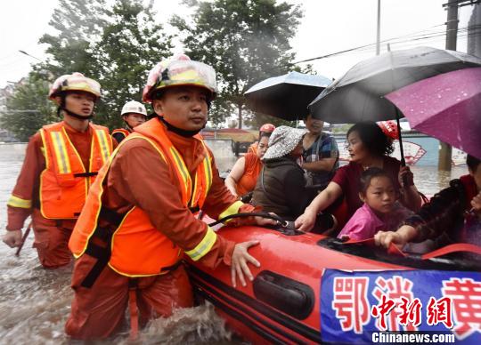中新网黄石5月26日电 受连续强降雨影响,湖北黄石26日多地出现积水,导致人员被困。当地消防紧急出动,转移营救多人。