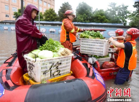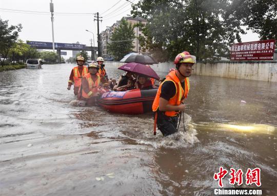 消防人员携带救生皮划艇进入积水中,挨个寻找被困车中的群众,共转移被困人员30余名。随后,消防人员又再次返回积水处,把部分群众被水浸泡的鸡、鸭、蔬菜等货物进行了转移。