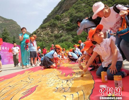 图为孩子们共同绘制“中国龙”。少华山景区
