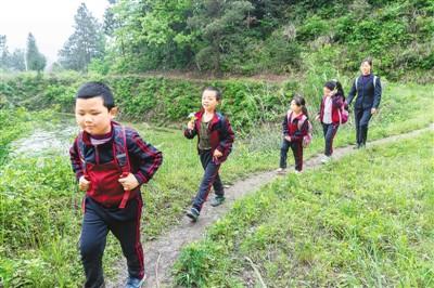 除了教孩子们学好功课,黄先群还承担起照顾孩子们的职责。图为她接上同路的孩子,一起去学校。