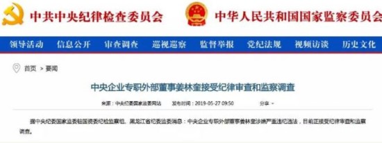 5月27日,据中央纪委国家监委驻国资委纪检监察组、黑龙江省纪委监委消息,中央企业专职外部董事姜林奎涉嫌严重违纪违法,目前正接受纪律审查和监察调查。据了解,姜林奎曾在哈药集团工作至少28年,并担任过三精制药董事长和哈药集团副董事长、总经理、党委副书记。