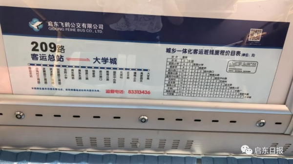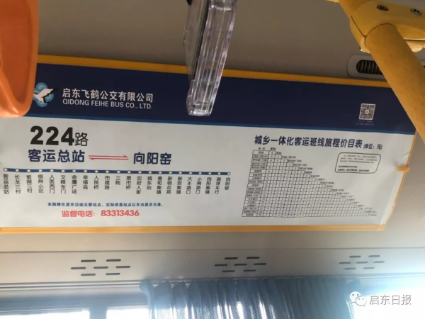 近日,乘坐启东飞鹤公交209路、224路、225路的市民会惊奇地发现,车厢内部张贴的“价目表”已经更新,表中详细标注了线路上主要站点之间的里程数,以及相关票价,票价只有2元和4元价位。
