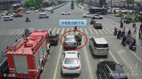 恰巧在消防车右侧的车道上,市公安局图侦支队民警许乾乾和妻子正驾车准备去接上补习班的孩子。