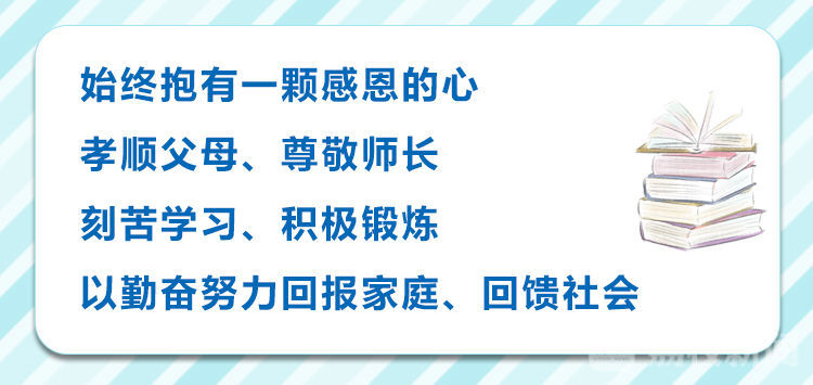 为了国家建设和家庭幸福,你们中不少同学的父母离开了家乡,来到南京工作,社会和老师也为你们的学习和成长创造了良好环境。希望同学们始终抱有一颗感恩的心,孝顺父母、尊敬师长,刻苦学习、积极锻炼,以勤奋努力回报家庭、回馈社会。只要我们每一个人牢记从哪里来,始终坚守正能量,走好人生的每一步,我们的国家和社会就会越来越好。