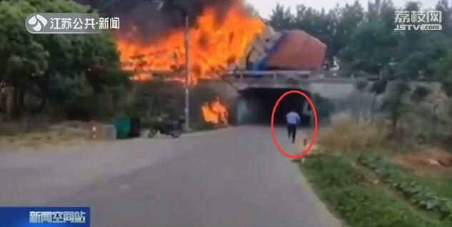 这个朝着大火浓烟奔跑的人就是章晓锋,视频拍摄于5月21日上午9点多,当时,一辆满载洗衣机,冰箱的货车突然着火,现场浓烟滚滚,火势凶猛。事发地段位于遥观镇塘桥村和湖头村接头处,下方桥洞是附近来往村民必经过道,当时章晓锋正在附近片区工作。当他到达现场时,围观群众越聚越多,火势越来越大,他连忙把围观群众隔离在危险区域外。当看到桥洞那端还有村民往火势处走,他不顾自身安危立刻冲上去,阻止行人通过。