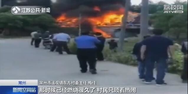 “村民只顾看热闹,对存在的安全隐患认识不足。现场起码有百来号人,那时候已经燃烧很久了,这个时候如果没有人去维持秩序,后果是难以想象的。”常州市遥观镇东方村委主任梅佳回忆。
