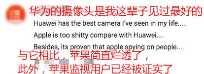 “华为的摄像头是我这辈子见过最好的,与它相比,苹果简直烂透了,此外,苹果监视用户已经被证实了。”
