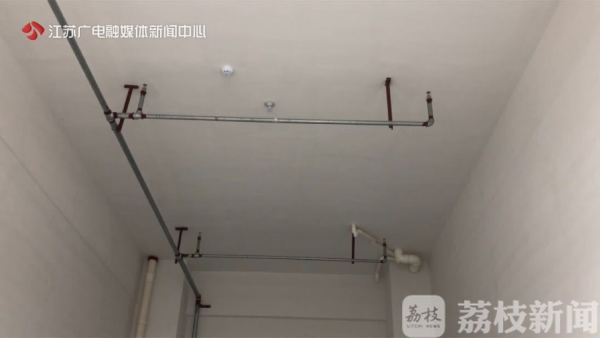"智华E+"楼盘在南京市江宁区文靖东路附近,走进业主吕女士买的"挑高公寓",只见房顶上有很多消防水管。