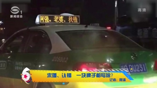 虚惊一场,不过人没事儿就好。其实啊,出租车广告牌闹出过很多的笑话。前不久,吉林全市的出租车顶灯,都亮起了安琪,我爱你的字样。原来吉林全城出租车亮起顶灯表白,是一位结婚13年丈夫给妻子补上求婚仪式。当然,有人表白肯定就有人道歉。四川老公阿强就在全城的出租车上打出老婆,我错了,原谅我吧。这是犯了多大的错误,才用了一万块一天包全城出租车顶灯这么大的手笔呀!