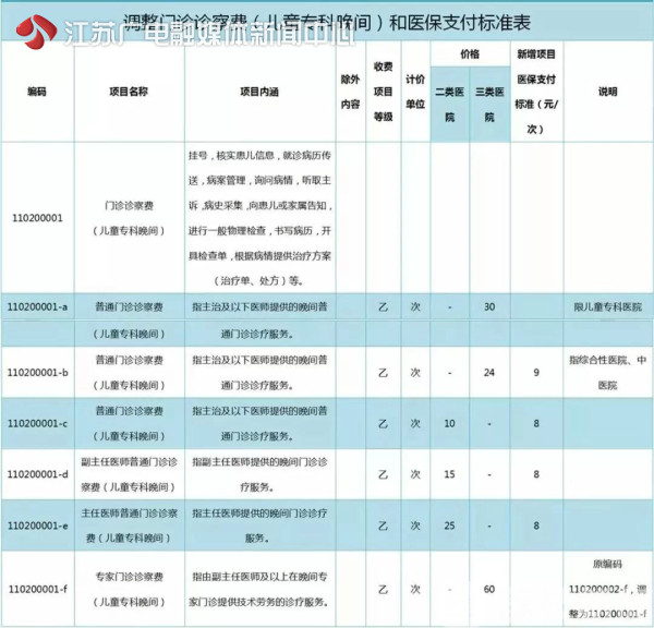 三、门诊诊察费(儿童专科晚间)调整后,有关医保基金支付政策不变,并同步纳入医保目录支付范围,医保基金支付标准分别为三级公立医院9元/次,二级公立医院8元/次;
