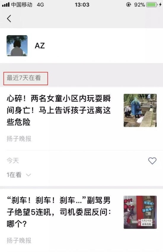 微信看一看的“朋友在看”栏目正灰度上线朋友在看列表功能,在看一看中点击朋友朋友头像或昵称,即可看到朋友最近7天点击了“在看”的文章,方便微信朋友间针对文章的更多互动。