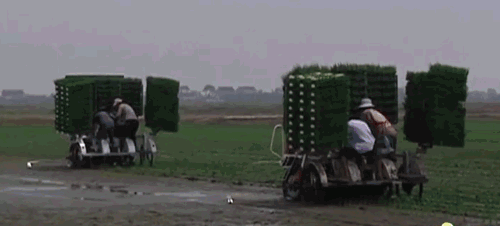 合作社技术顾问老韩说,从前1000多亩大田,得有十七八亩秧池的育秧,30多个工人,捧的捧,推的推,前前后后忙上个把月,个个累脱了形,如今十一二个人可以玩的忽溜溜的,20天!全搞定。