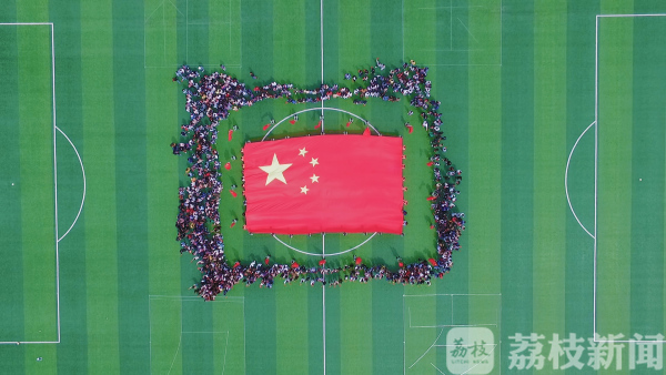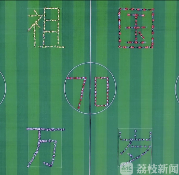 当一首首熟悉的旋律响起时,越来越多的师生被现场气氛感染,加入到歌唱的行列中来,从欣喜到动情,从小声合唱到大声齐唱,共同将现场的气氛推向一个个高潮。最后,千名师生集中在操场,拼成巨大的“祖国万岁”“70”的字样,在欢呼声中共同高喊“祖国万岁!”,祝福伟大的祖国繁荣昌盛、富强美丽。