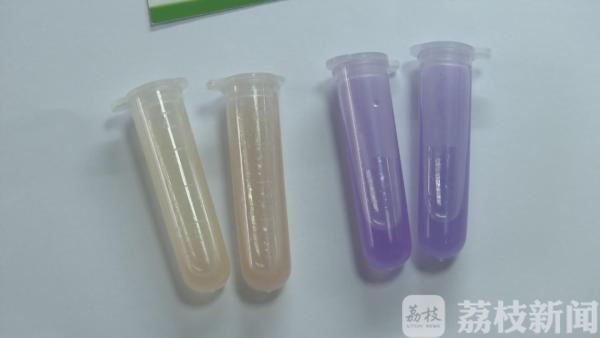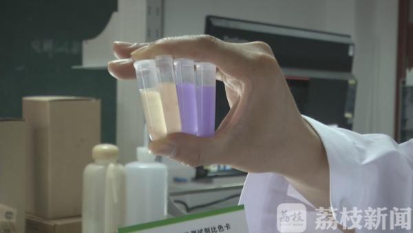 实验结果很快出来了,四种样品中的铝含量一目了然。扬州大学化学化工学院副教授景崤壁介绍,“我们可以看到前两管的颜色发黄 ,后面两根管子里面的颜色发紫 ,其实越发红或者红的发紫的 ,说明铝的含量是越高的 ,因此我们样品后两个,三号和四号的铝含量是非常高的。”
