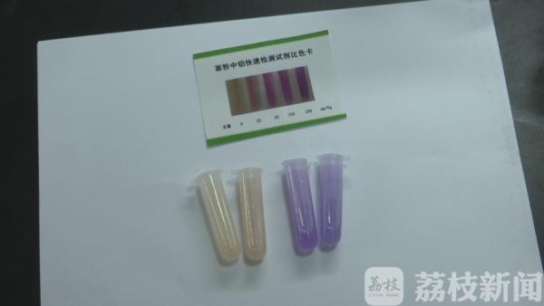 这四份样品分别是:一号,某连锁餐饮店购买的4元一根的“无铝油条”;二号到四号分别是从不同小区附近摊点购买的1元一根的油条,其中,三号就是打出招牌,明示自己是无铝无矾的油条。那么,这四种油条当中,到底含不含明矾和铝呢?专家介绍,明矾又称十二水合硫酸铝钾,可以用硫酸铝钾快速检测试剂进行检测,如果样品中铝含量超标,即可证明其添加了明矾。