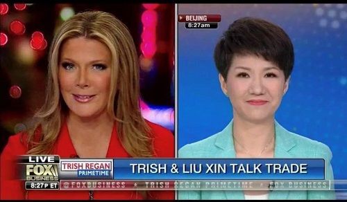 北京时间今天8点26分,全世界人民围观了中央广播电视总台中国国际电视台(CGTN)主播刘欣与美国福克斯商业频道(Fox Business Network)主播翠西·里根(Trish Regan)的“跨洋对话”。