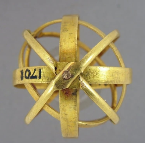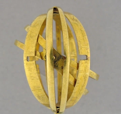 天文球戒指不是孤品,在欧洲许多博物馆均有收藏,其中以大英博物馆收藏的数量居多。这些天文球戒指由3至8条圆环组成,大多镌刻有星座、刻度、铭文或特殊图案,当然也有素面的。